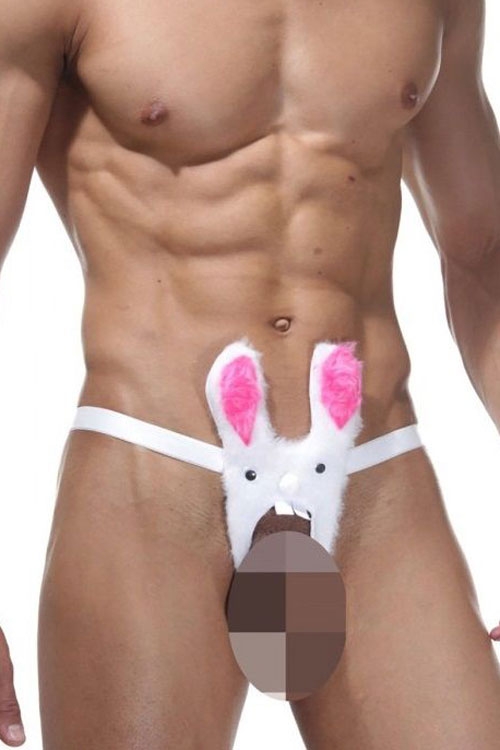 Игривые трусы белого цета с доступом станут прекрасным дополнением к вашему эротичному образу. Спереди - забавный заяц с розовыми ушами, сзади - полосочка-стринги. Эти трусы отлично тянутся.