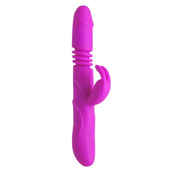 Многофункциональный вибромассажер с поступательными движениями и ротацией. Под его водонепроницаемым корпусом, скрывается удивительно мощный моторчик, отвечающий за 12 мощных программ вибрации и пульсации, а также 4 толкательных режима (поступательных движений) и функцию ротации головки. Вместе с изделием используйте смазки (лубриканты) только на водной основе, т.к. остальные смазки могут повредить структуру силикона.